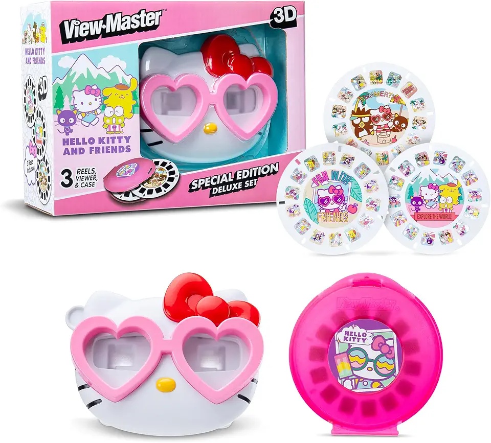 Hello Kitty Deluxe View-Master set with kawaii reels. Cute design and clear 3D images delight fans. Retro classic with modern appeal – perfect for kids and collectors seeking fun, imaginative play.